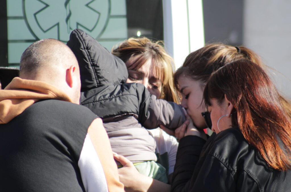 Amigos y vecinos de las chicas asesinadas consolando a la familia. Foto/Andrés Pelozo